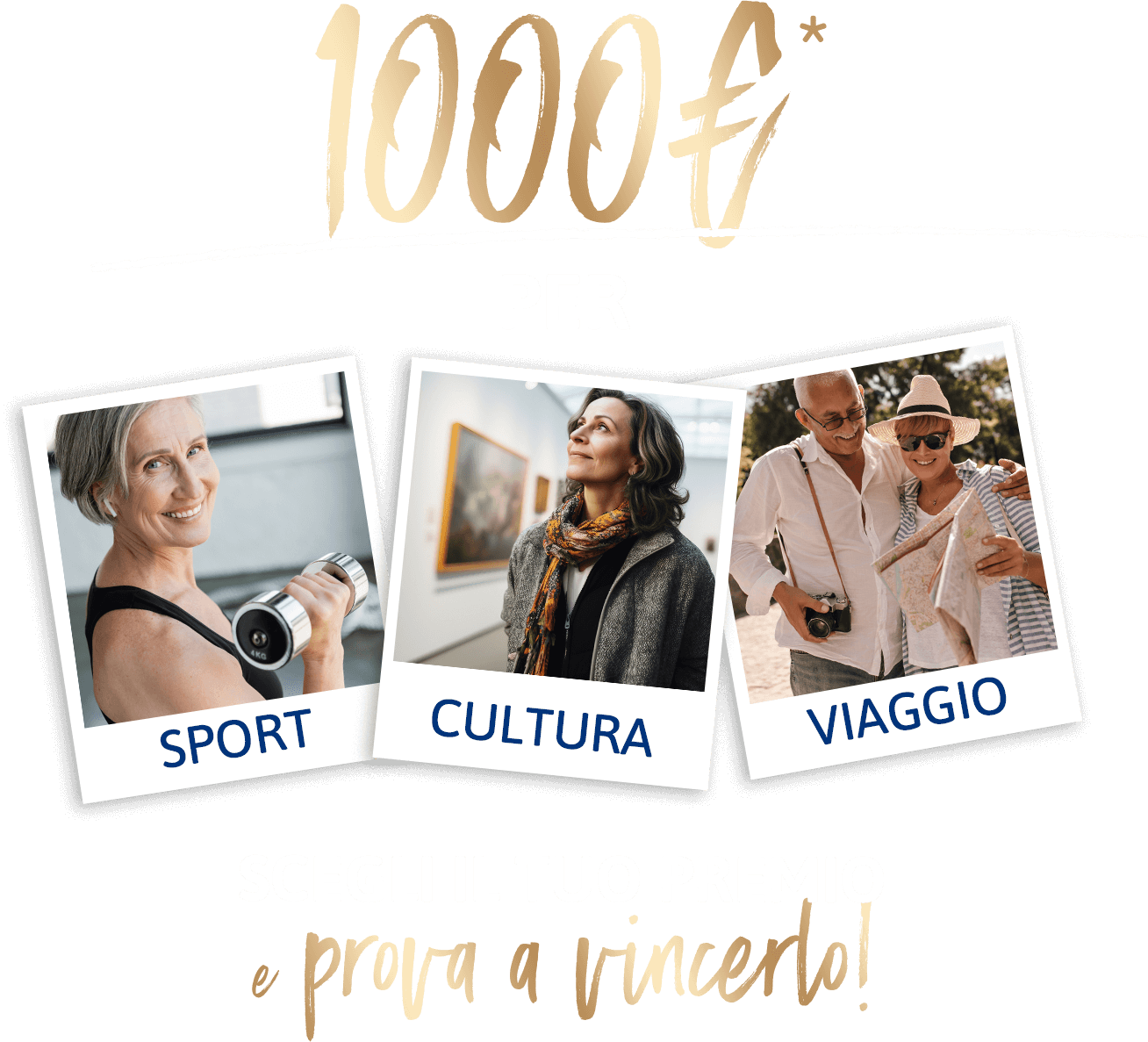 *Il premio consisterà in una gift card digitale del valore di €1.000,00 spendibile a scelta del vincitore in ambito sport (es. gift card per negozio sportivo), cultura (es. gift card per portale di vendita biglietti per spettacoli) o viaggio (es. gift card per biglietti aerei o cofanetti).